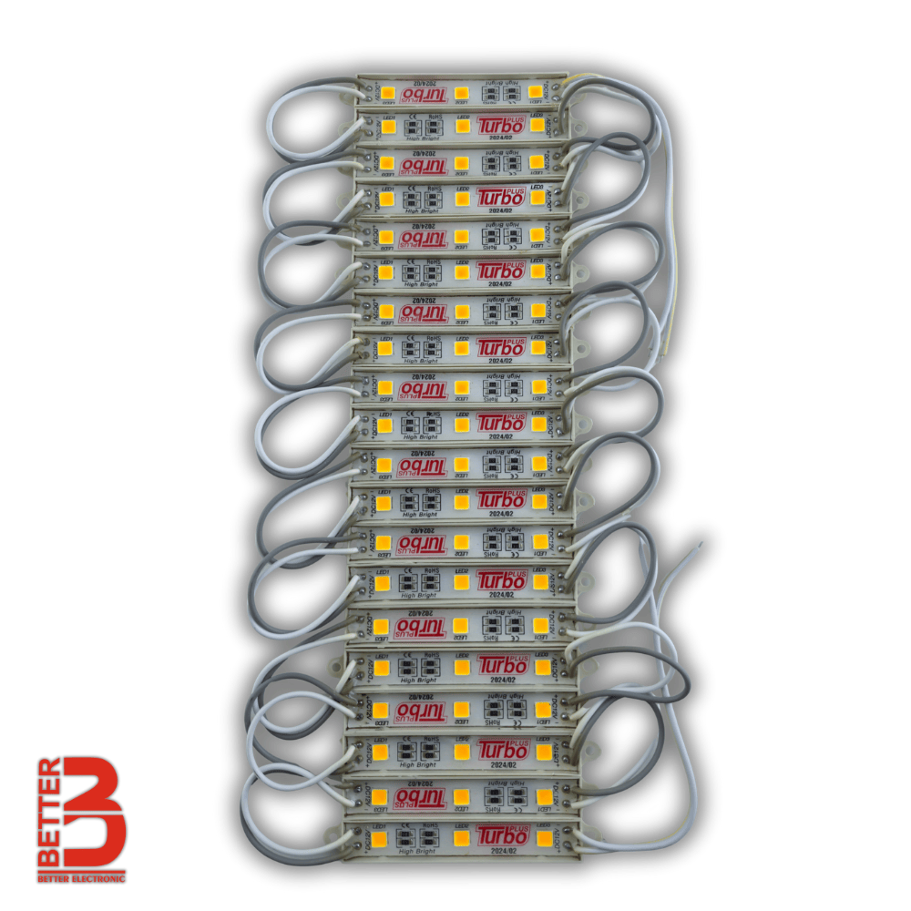 SMD بلوکی ۴ مقاومت رزینی برند توربو یکی از پرفروش‌ترین و باکیفیت‌ترین محصولات نورپردازی در بازار ایران است که توسط فروشگاه بتر الکترونیک عرضه می‌شود. این مدل با استفاده از چیپ LED باکیفیت و چهار مقاومت جداگانه، نور پایدار، عمر طولانی و کمترین افت نور را در تابلوهای چلنیوم، حروف برجسته و نورپردازی محیطی ارائه می‌دهد.